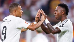 كانت المباراة كرنفالًا من الأهداف، حيث تألق نجوم الفريق في تقديم عرض هجومي مبهر. بدأ العرض الصاروخي بتسديدة قوية من كيليان مبابي، تبعها هدف آخر بنفس القوة من فالفيردي، ليؤكد الثنائي الفرنسي-الأوروغواياني سيطرتهما على وسط الملعب.