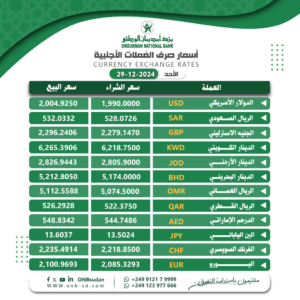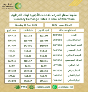 اقتصاد ـ شبكة_الخبر ـ سجلت أسعار صرف العملات الأجنبية مقابل الجنيه السوداني في السوق السوداء ارتفاعاً ملحوظاً اليوم الأحد 29 ديسمبر 2024 في مستهل تعاملات الأسبوع.
