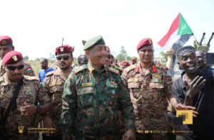 بيكة ـ شبكة_الخبر ـ تفقد رئيس مجلس السيادة القائد العام للقوات المسلحة الفريق أول الركن عبدالفتاح البرهان سير العمليات العسكرية على الخطوط الأمامية بولاية الجزيرة رافقه الفريق أول ميرغني إدريس سليمان مدير عام منظومة الصناعات الدفاعية.