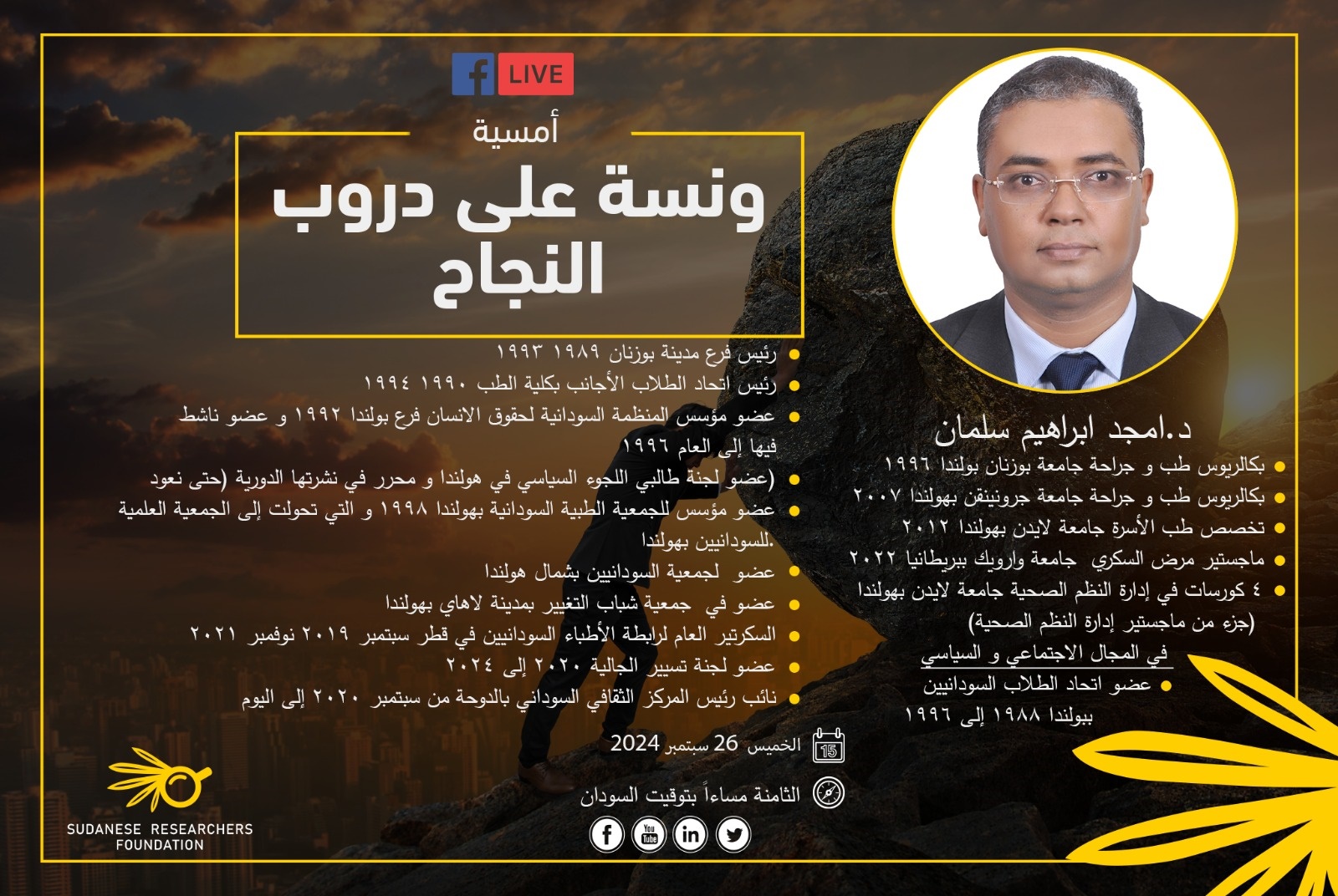 شاهد ..أٌمسية «ونسة » على دٌروب النجاح… مع الدكتور أمجد ابراهيم سلمان