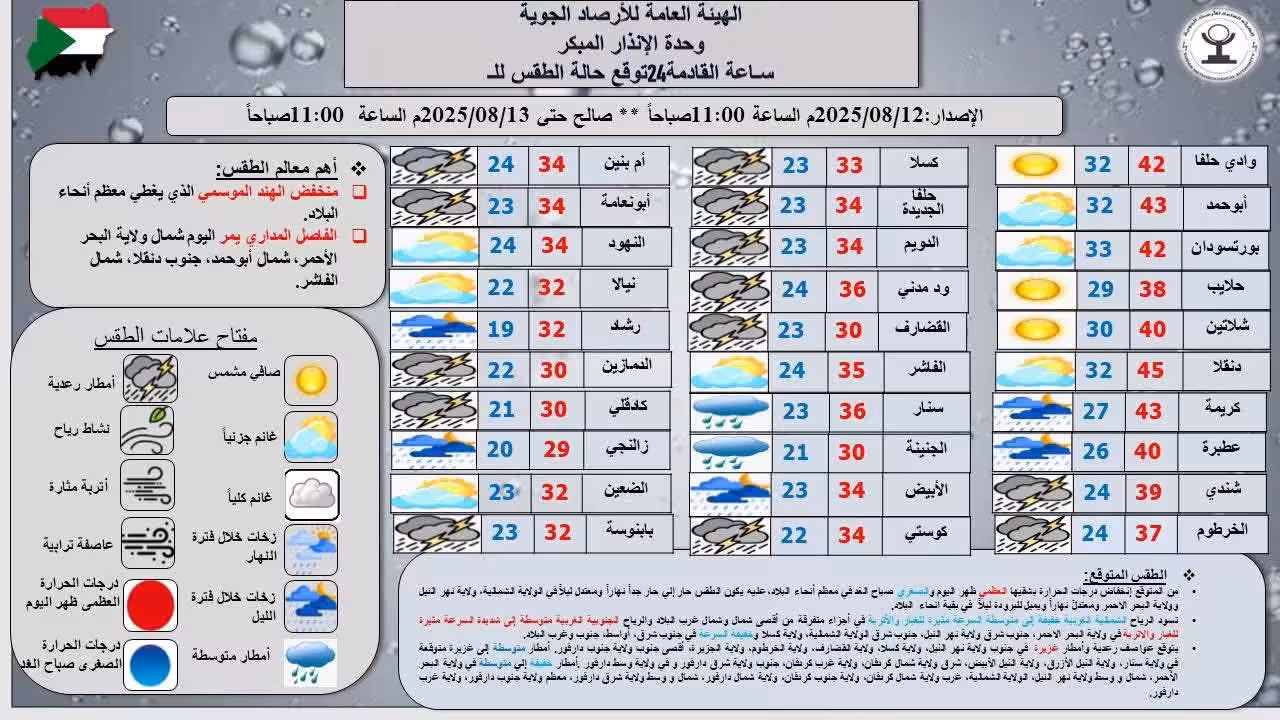 توقعات الطقس خلال الـ24 ساعة القادمة في السودان
