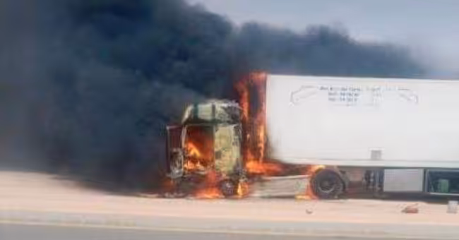 حريق يلتهم ثلاث شاحنات مساعدات قرب مليط