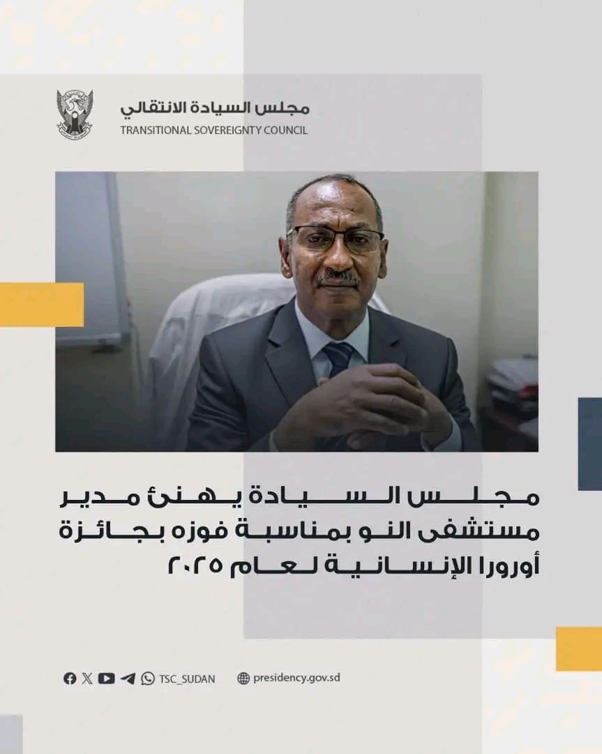 مجلس السيادة ووزارة الصحة يهنئان د. جمال الطيب بفوزه بجائزة أورورا