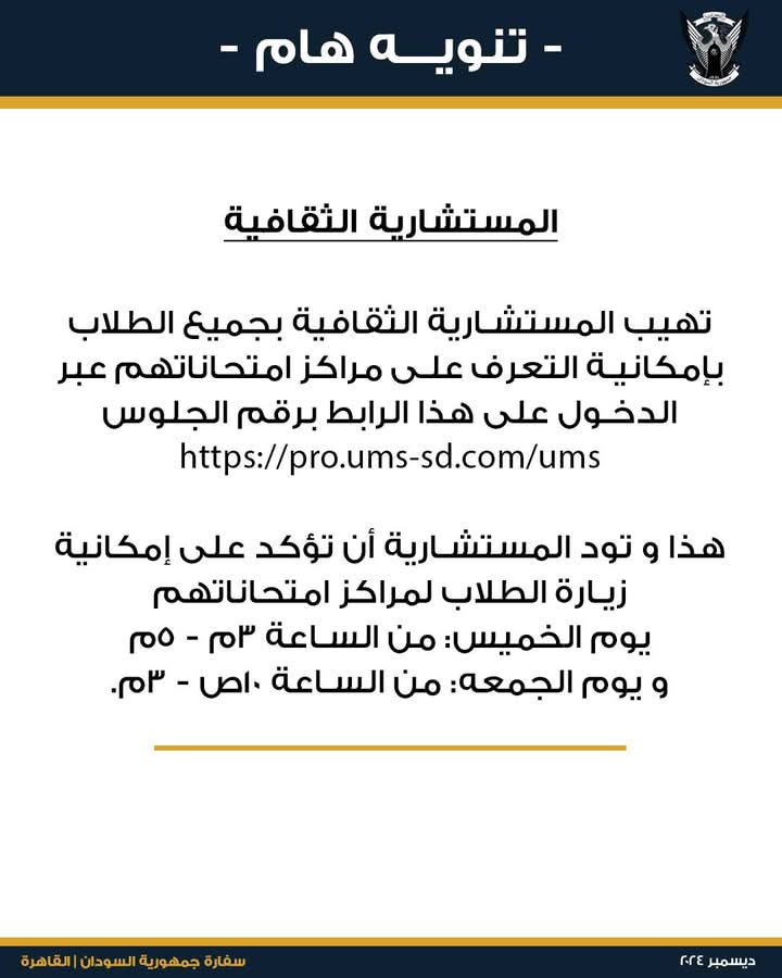 إِعْلان أخير لطلاب الشهادة السودانية في مصر