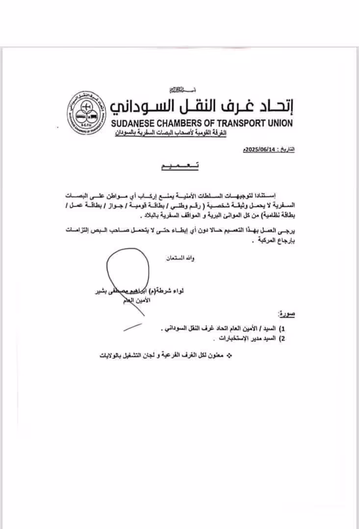 السودان يشدد الرقابة على السفر البري: لا صعود للبصات دون هوية!