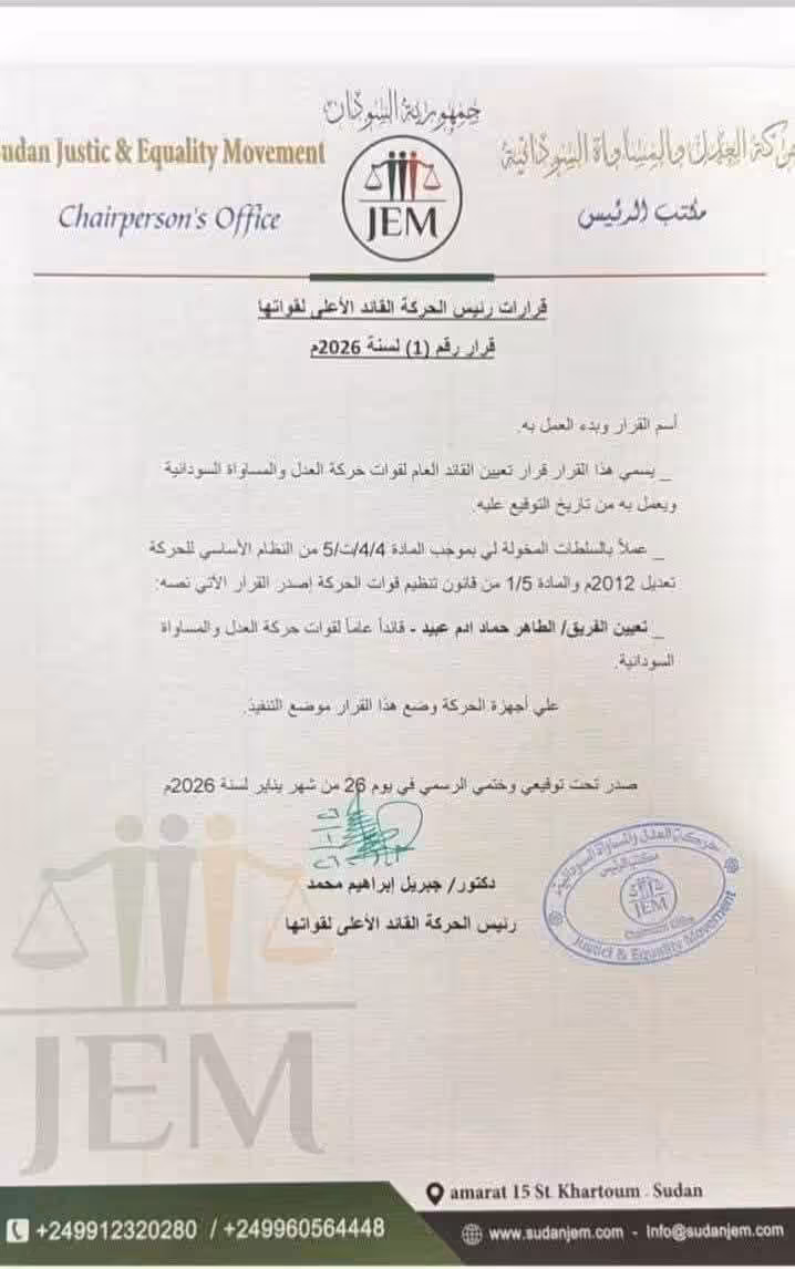 السودان: جبريل إبراهيم يعين مطلوباً للجنائية الدولية مستشاراً عسكرياً