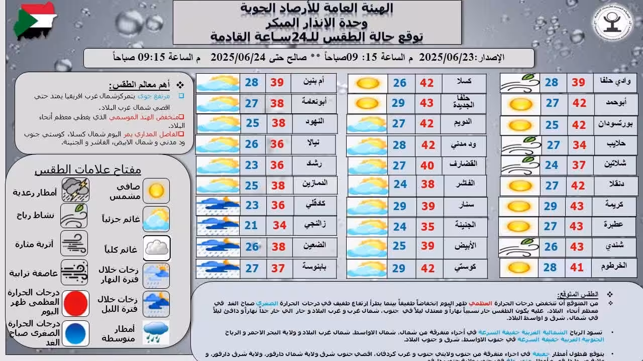 تعرف على أحوال الطقس في السودان خلال الـ24 ساعة القادمة